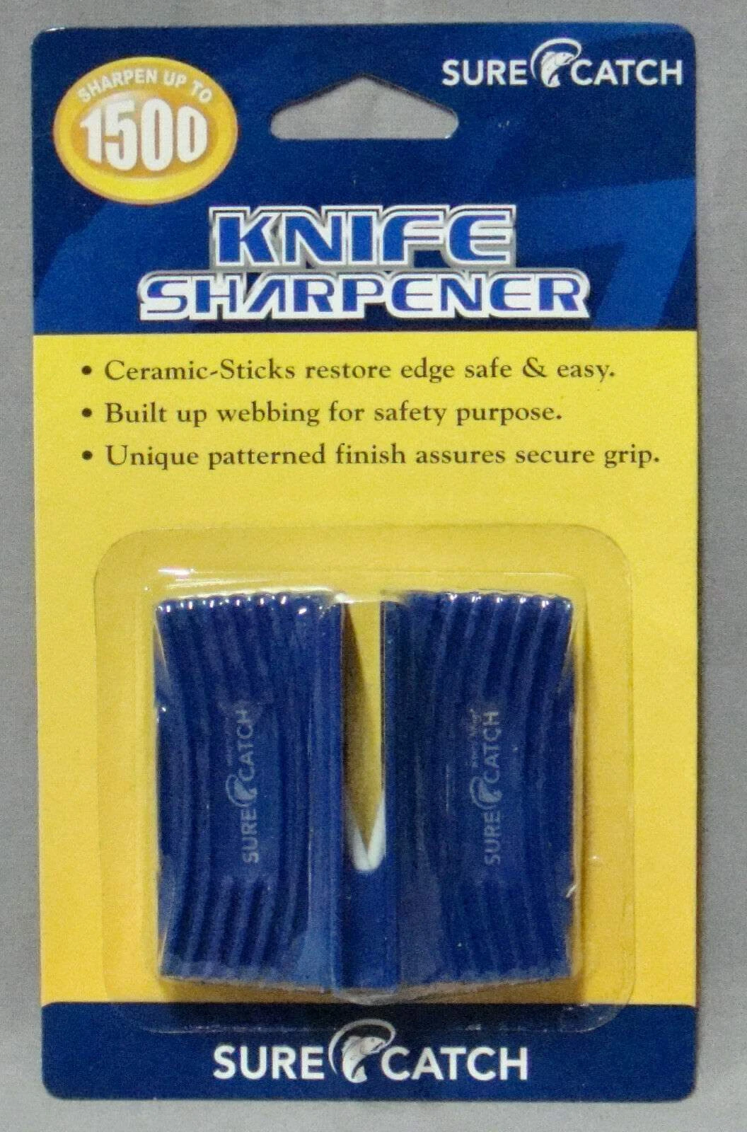 Surecatch Knife Sharpener is designed to restore the original sharpness for fillet knives. It is also recommended for kitchen knives with blade as well. The blade is automatically aligned for the sharpest honing angle through the fixed ceramic sticks. Great for the outdoor and kitchen.